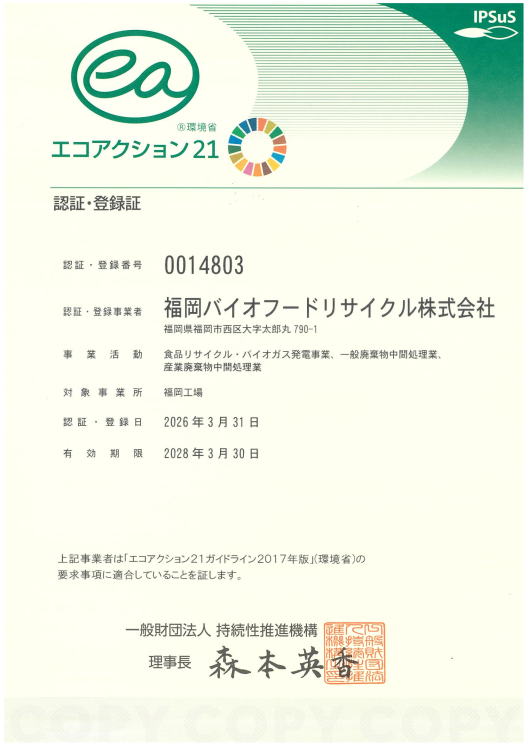環境省が策定した環境マネジメントシステムであるエコアクション21の認証登録を受けました。取組の内容については事業内容ページに掲載している環境経営レポートをご覧ください。